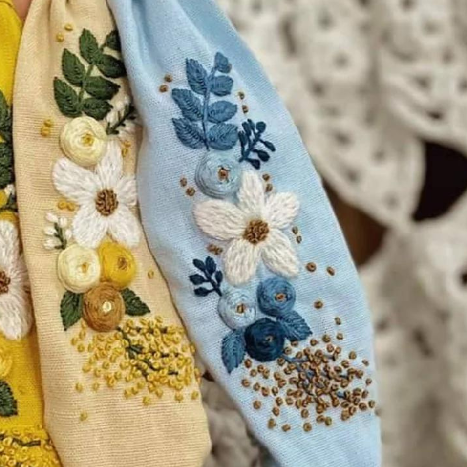 Floral Embroidered Headband Linen Turban Cute Flower Garden Embroidery Hairband Vintage Hair Accessories OEM Made in Vietnam