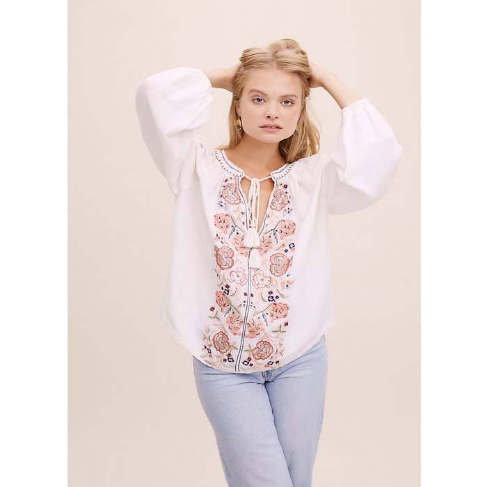 Floral Embroidered Warm Weather Wardrobe Collection Women Blouse Sweet Charm Ladies Top Tassel Ties For Bohemian Touch