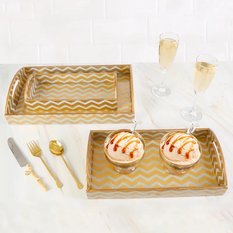 Floral Enamel Printed Chip and Dip Handcrafted Mango Wood Minimal Serving Decorative Plates Modern Kitchenware Fruit Bowl Tray