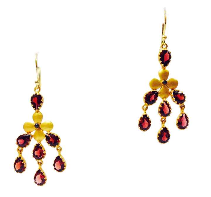 Floral Flawless Sterling Silver 925 Gold Plated Labradorite Garnet Blue Topaz Grey Red Drop Faceted Unique Trendy Earrings