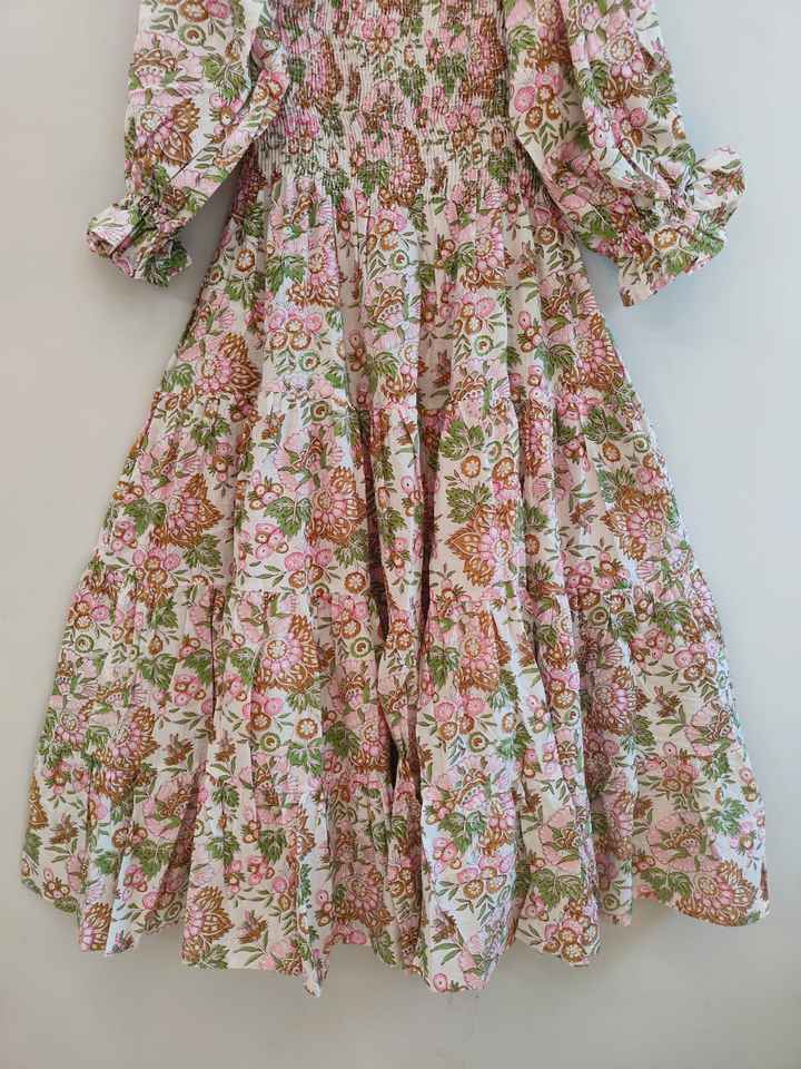 Floral Hand Block Print Kyra Floor-Length Bohemian Cotton V-neck Long Sleeve Party Dress Women Gift Your Loved Short Tunics