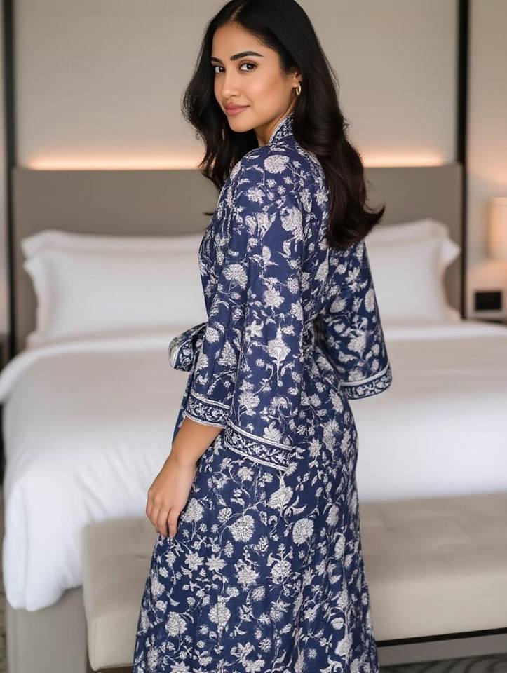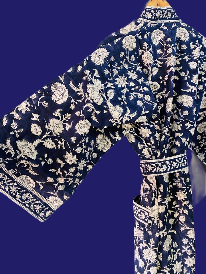 Floral Indigo Cotton Kimono Robe Stripe Belt Women Bulk Spa Hotel Resort Bridesmaid Robes
