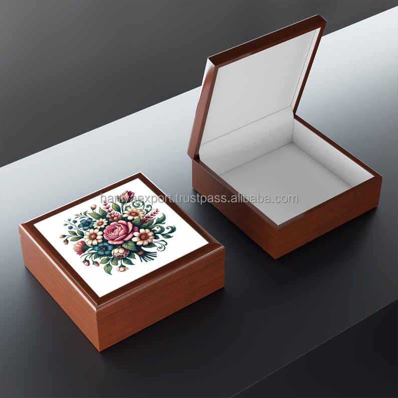 Floral Jewelry Box, Organizer Case for Rings, Earrings, Bracelets, Trinkets, Wooden Keepsake, Decorative Gift Storage Container