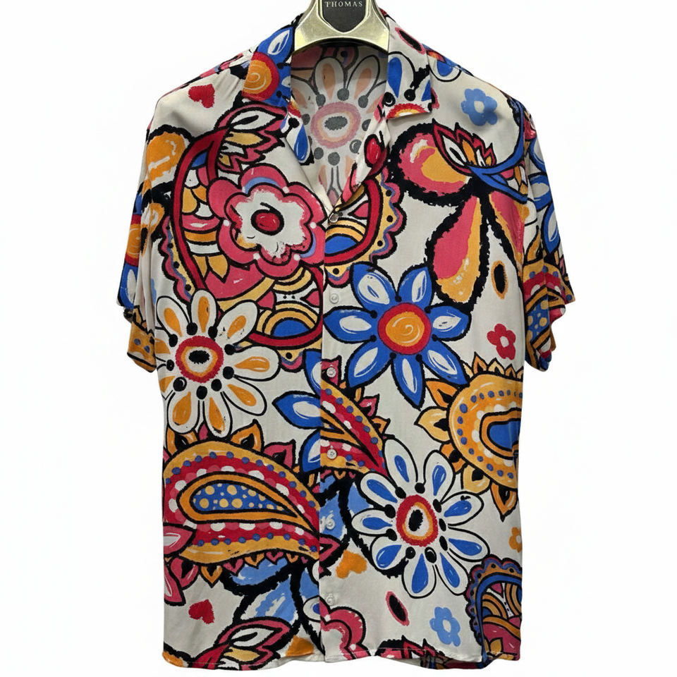 Floral Mens Short Sleeve Shirt Relaxed Fit Satin Fabric Breathable Stylish Summer Design Casual Wear Holiday Outfit