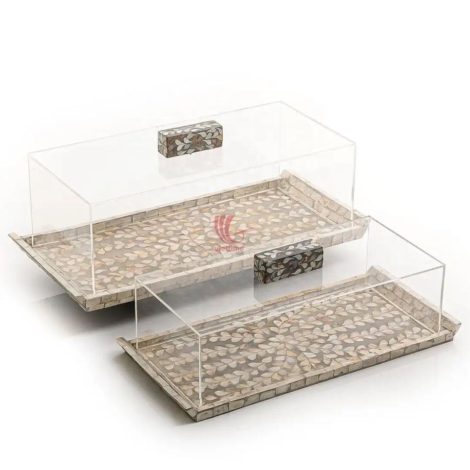 Floral Mosaic Pattern Rectangle Shape MOP, Mother Of Pearl Tray, Serving Tray Wholesale From Vietnam