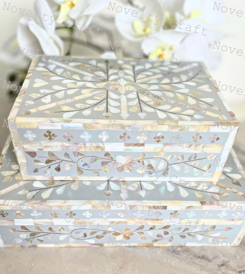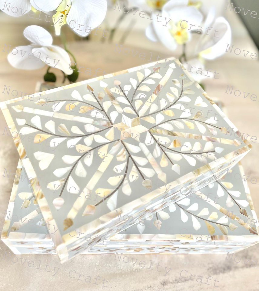 Floral Mother of Pearl Inlay Rectangle Resin Jewelry Box Quality Women's Storage Case for Wending Jewelry