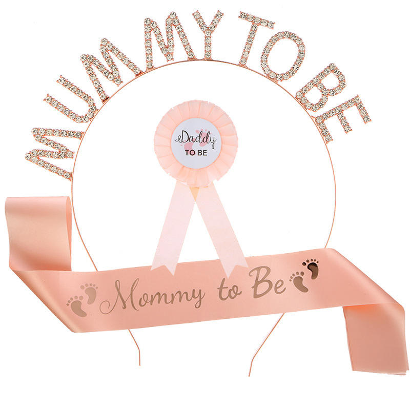 Floral Mummy to Be Sash Mum to Be Sash and Tiara Rhinestone Crown Headband Baby Shower Sash Party Decoration