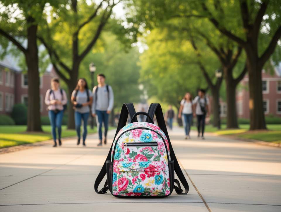 Floral Pattern Backpack Women Medium Capacity 10-25L Shoulder Strap All Seasons Polyester Material