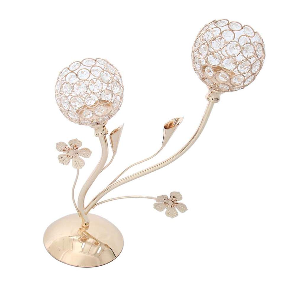 Floral Pattern Crystal Tea Light Candle Holder Beautifully Hand Crafted in Premium Quality Aluminium and Crystal for Home Decor