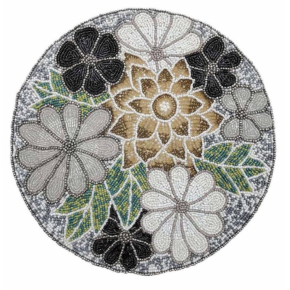Floral Pattern Glass Beaded Table Mat Dinner Table Glass Beads Table Mat Beaded Charger Place Mats for Home Wedding Party Decor