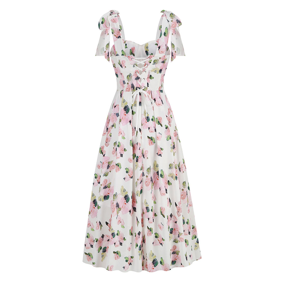 Summer Floral Pattern Green Skirt Dress Comfortable Styles Red Custom Mini Evening Party Dresses for Ladies Carton Collection