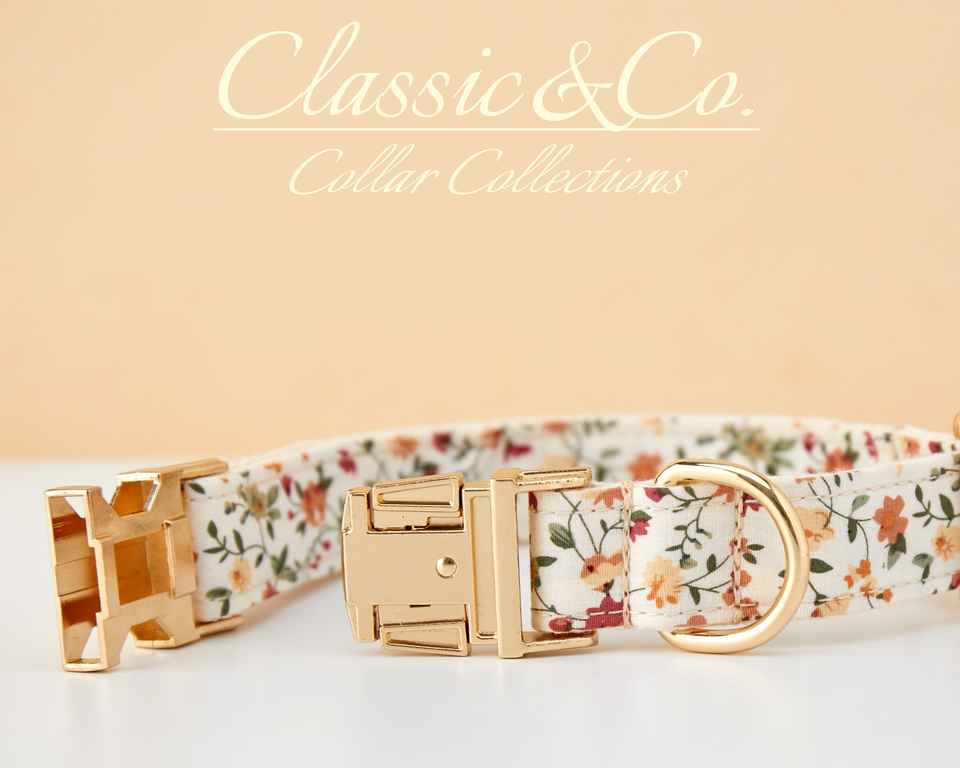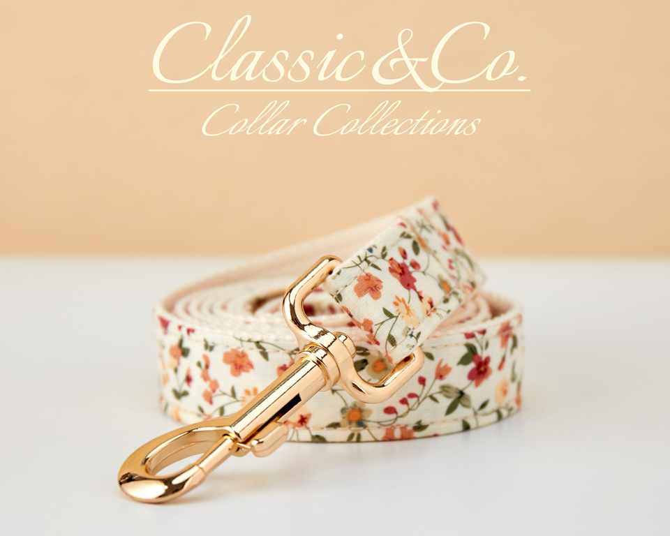 Floral Personalized Dog Collar Bow Tie Leash Set,Custom Engraved Pet Name Metal Buckle,Lilac Birthday Puppy Gift,Free Shipping