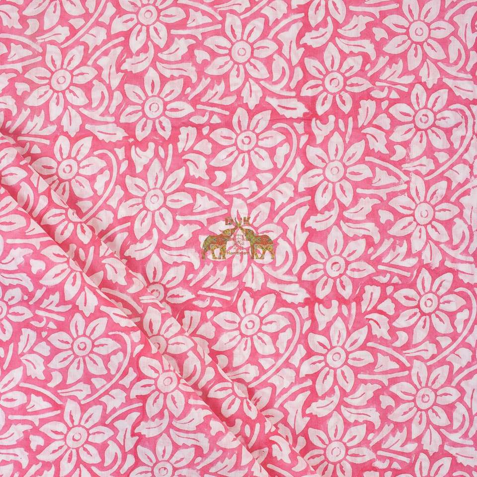 Floral Pink Hand Block Print Cotton Fabric Lightweight and Breathable Material for Women Clothing Summer Dresses Kurtis Tops