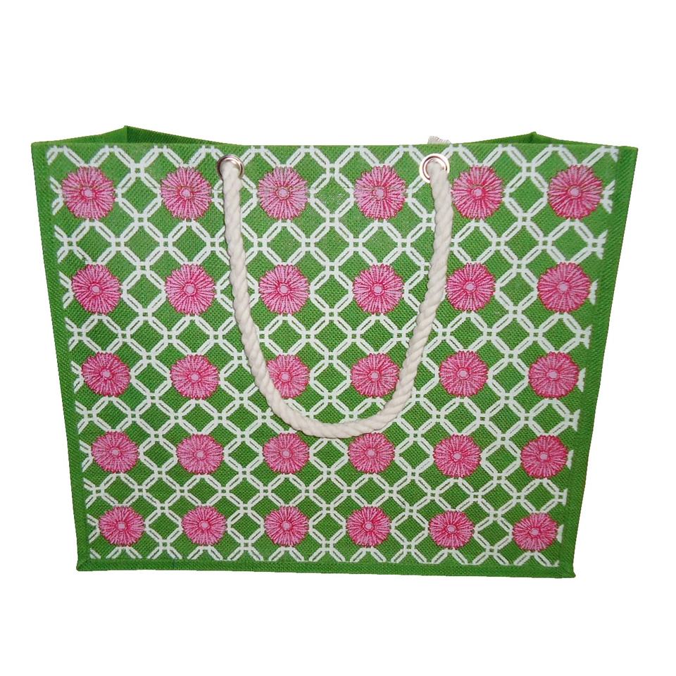 Floral Print Beach Bag With Twisted Rope Handle Custom Design Printed PP Laminated Natural Jute Tote Bag