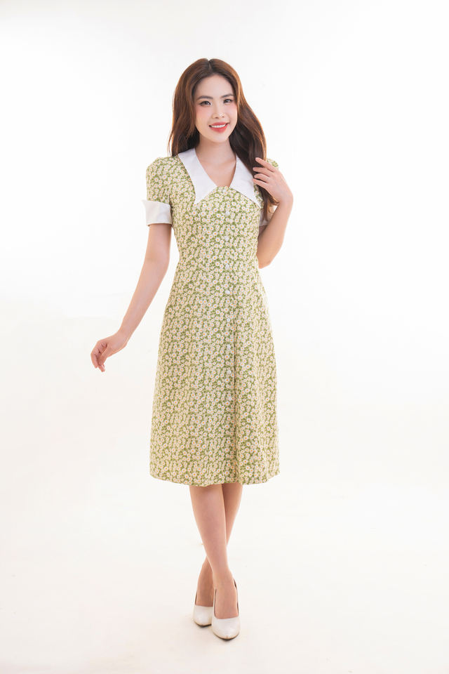 Floral Print Dress Vintage-Inspired Summer Dress High Waist Thin Short Sleeves High Quality