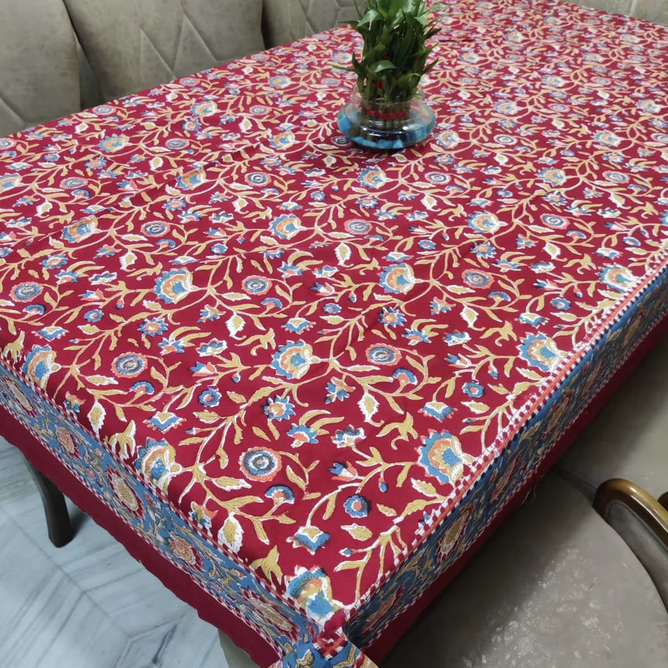 Floral Print Handcrafted 100% Cotton Heritage Tablecloth Handmade Block Printed Traditional Rectangle Artisan Design Cover
