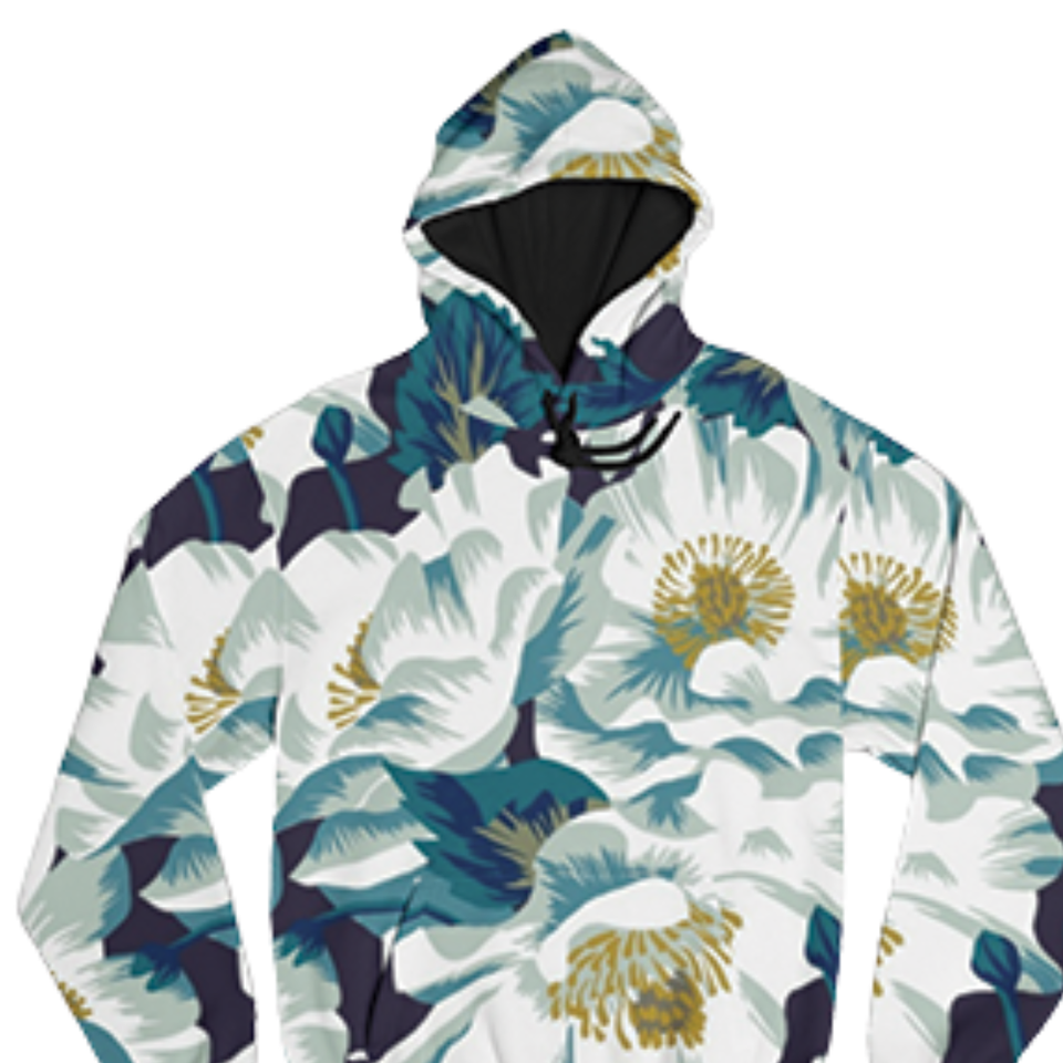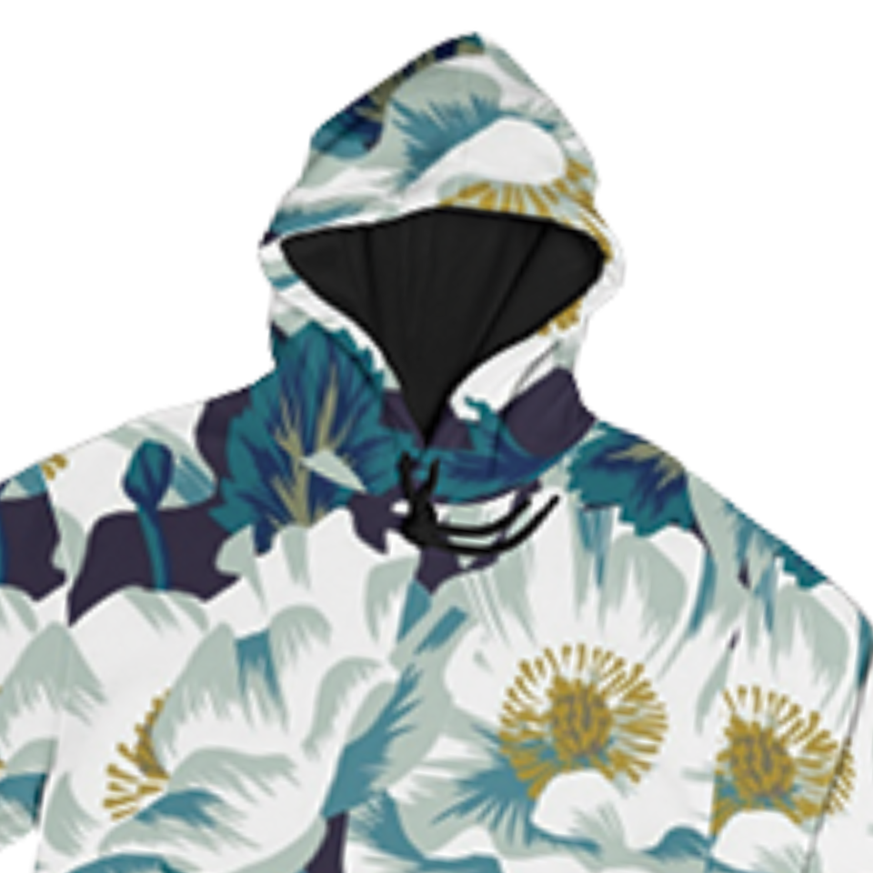 Floral Print Hoodie Women Blue White Flower Hoodie Elegant Stylish Pullover Fashion Hoodie Casual Streetwear Sweatshirt Premium