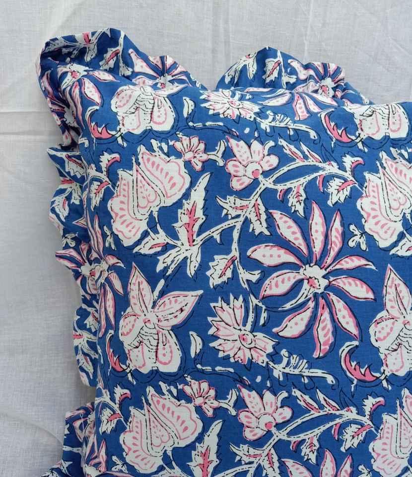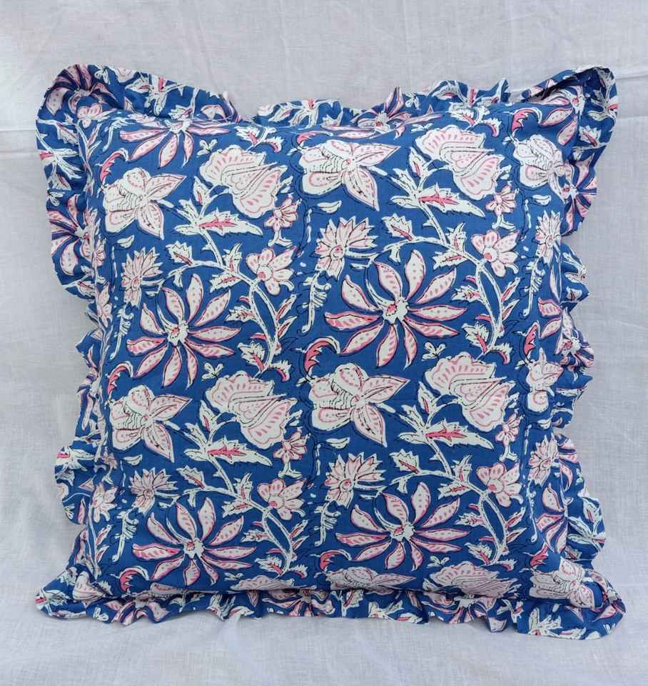 Floral Print Indian Cotton Cushion Cover in Pure Cotton