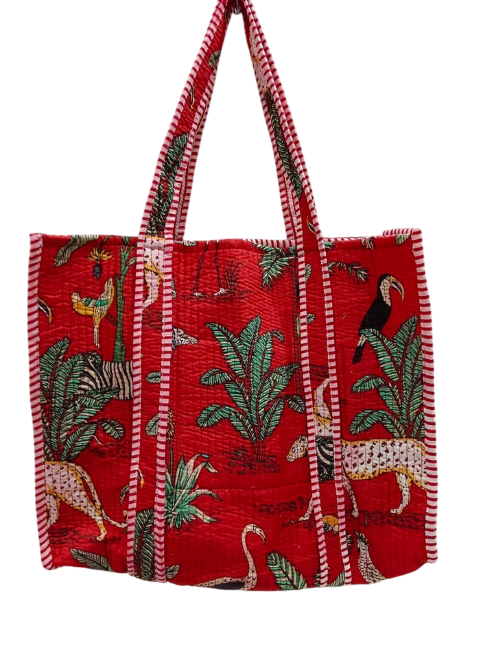Floral Print Premium Leather & Canvas Tote Bag Luxury Indian Summer Collection by Indian Manufacturer Exporter Women's Tote Bag
