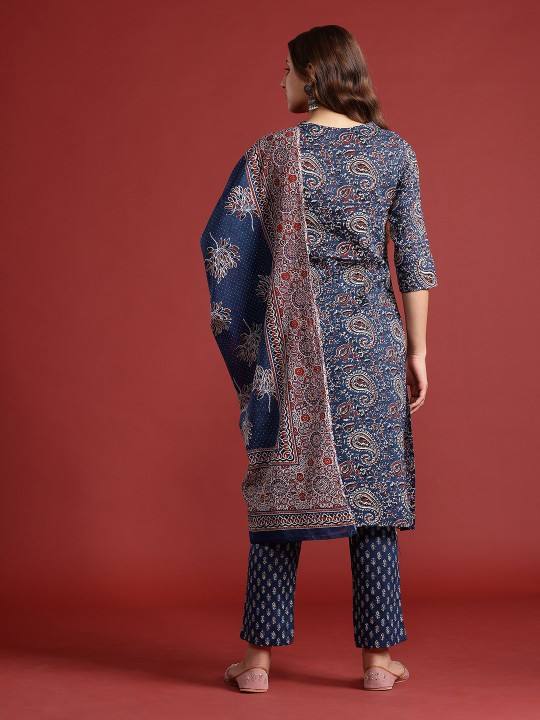 Floral Print Pure Cotton Kurta with Trousers & With Dupatta For Women Bulk product Customized Women Clothing