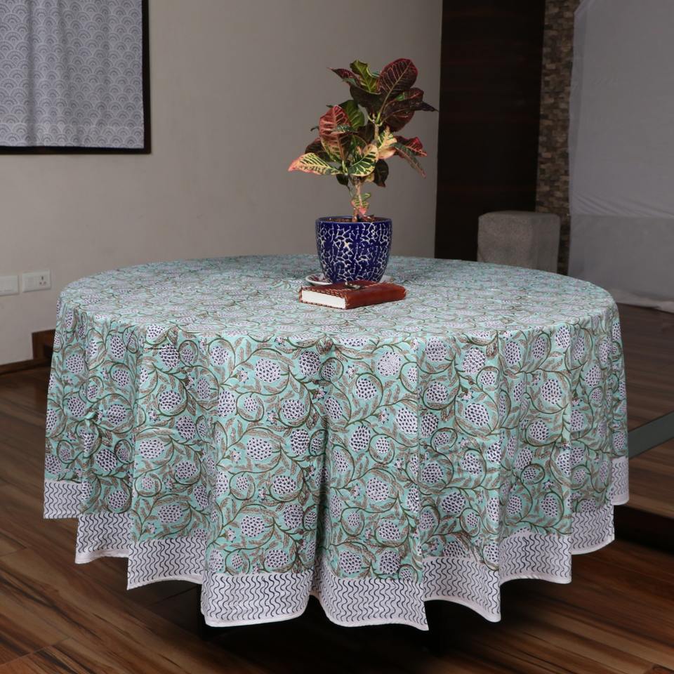 Beautiful Handmade Cotton Round Table Cover Floral Printed for New Year's Dining Room Decorative Cloth