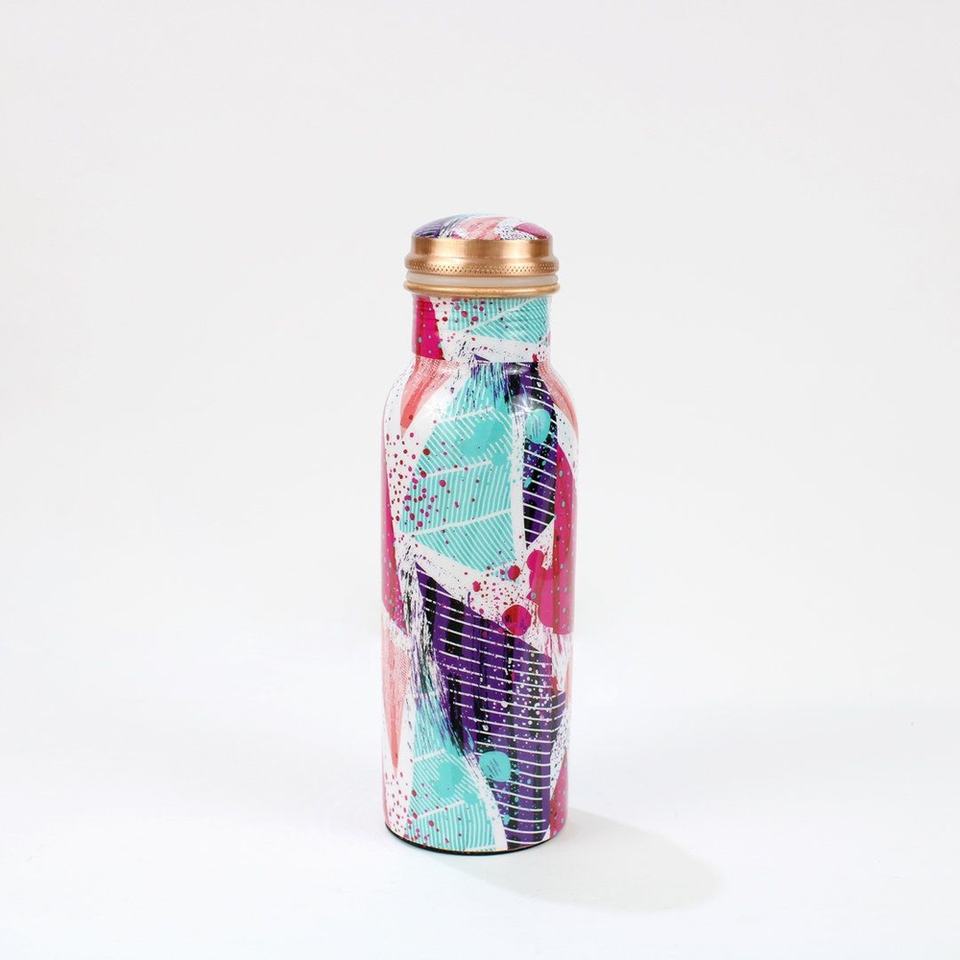 Floral Printed Design Enamel Coated Copper Water Bottle for Ayurvedic Health Benefits Leak Proof Eco Friendly & Durable Design