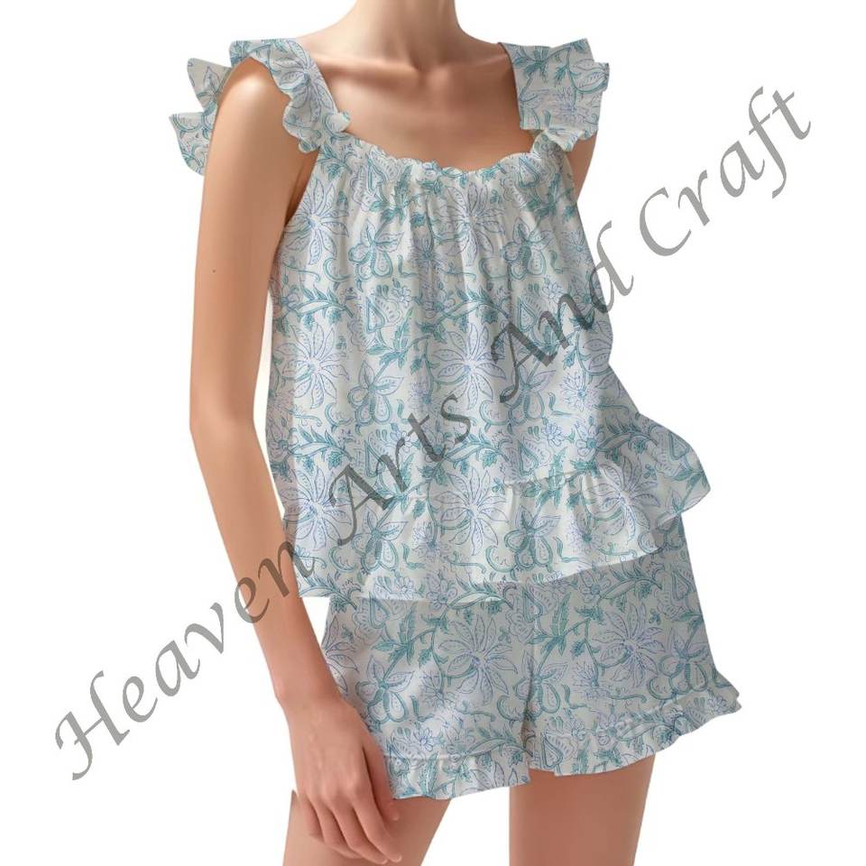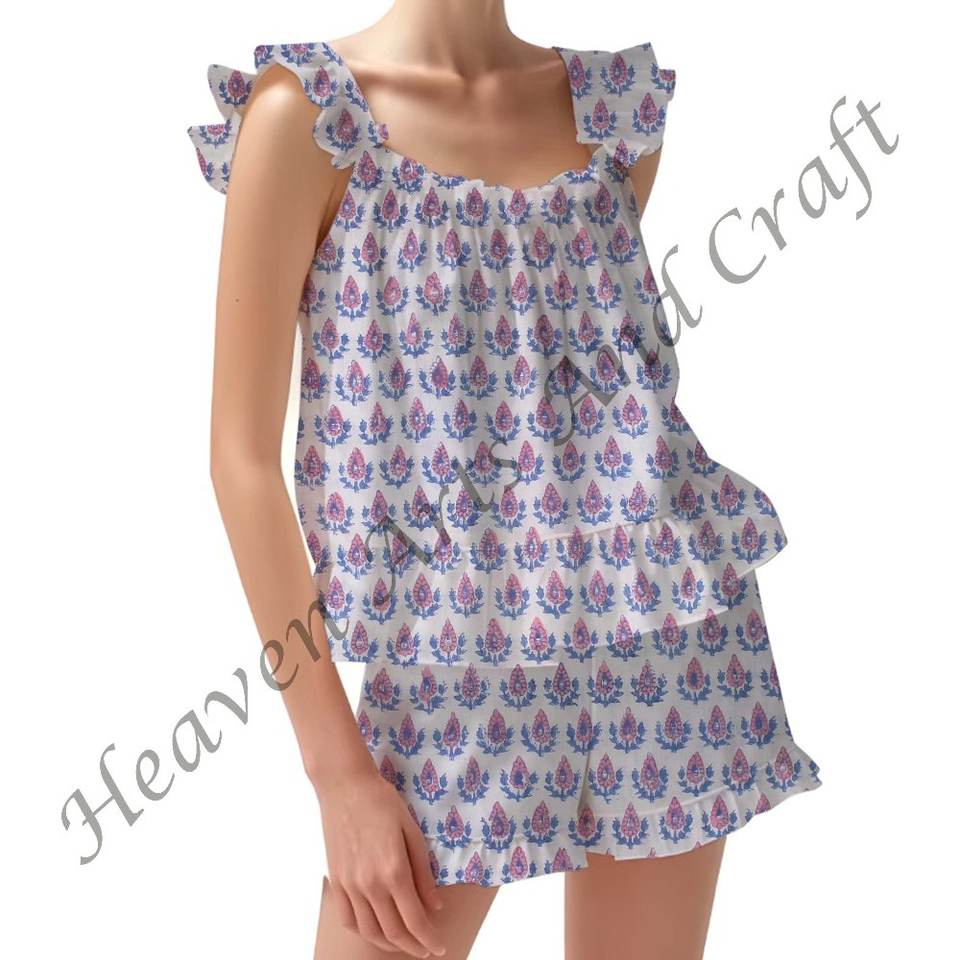 Product name:100% Cotton Printed Ruffle Pajama Set