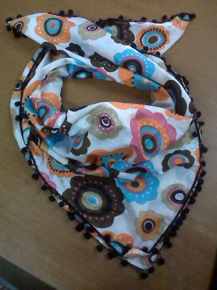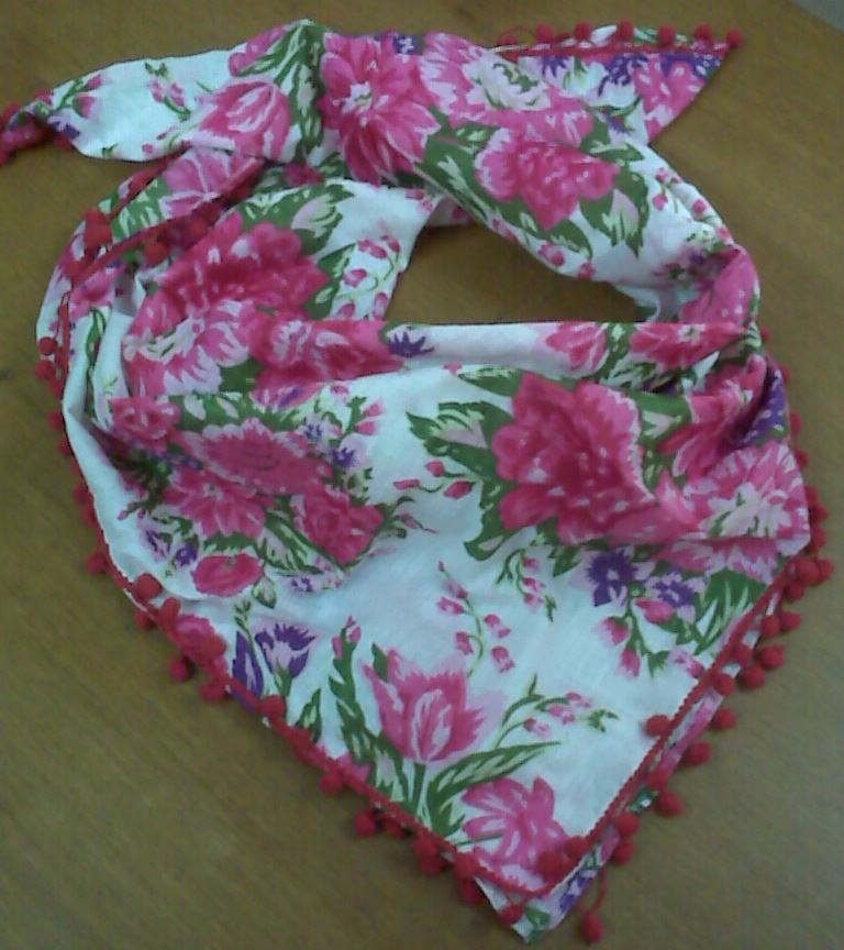 Floral Printed Lightweight Long Cotton Polyester Scarf with Pompoms Square Style for Girls in Summer Traditional Scarves Shawls