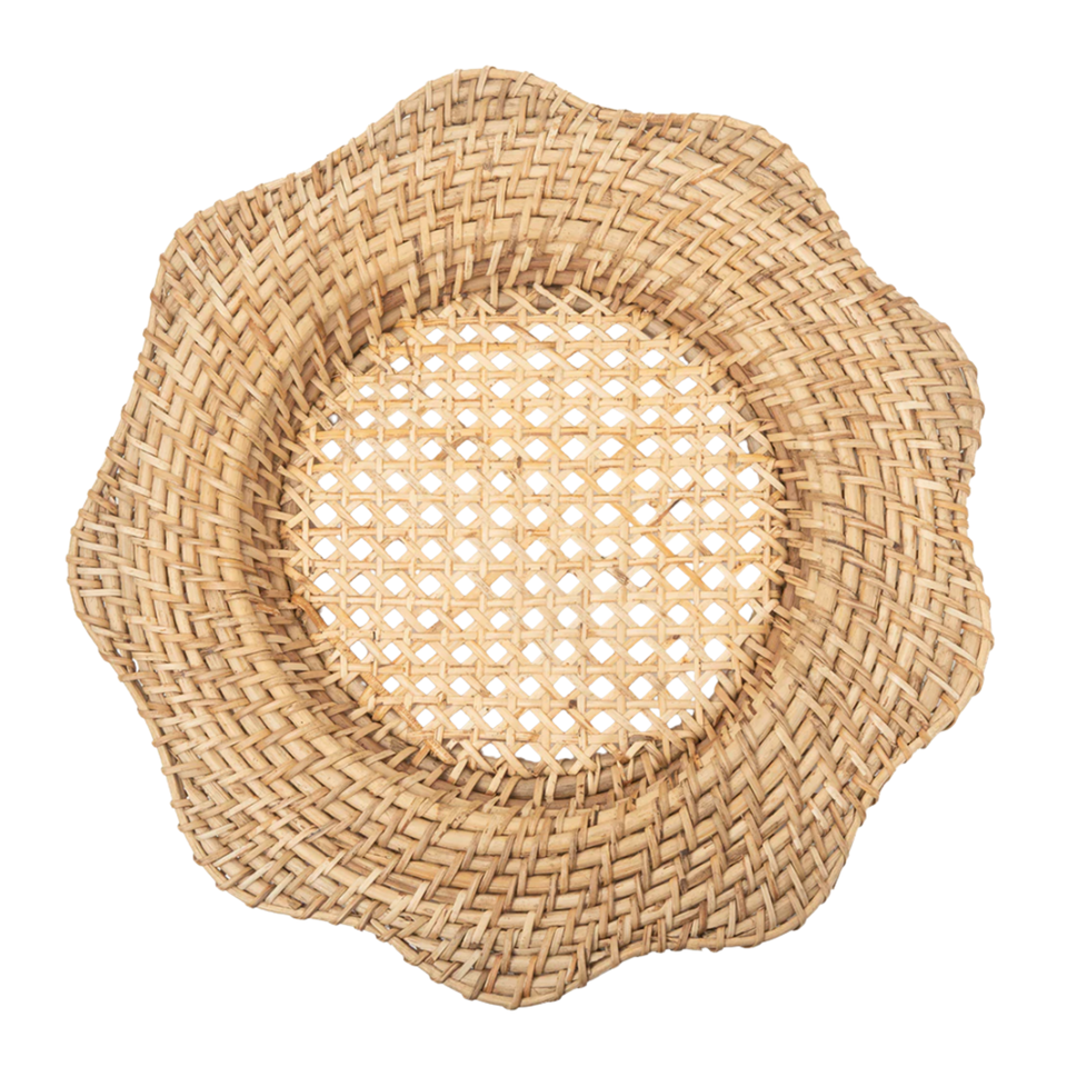 Floral Shape Bright Color Rattan Placemat, Vietnam Artisan Crafted Wicker Charger Plates, Luxury Sustainable Table Top Decor