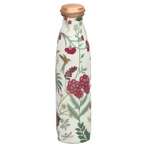 Floral Style Sticker Printed Pure Copper Water Bottle Available Drinkware with Customized Sizes Health Benefits Bottle
