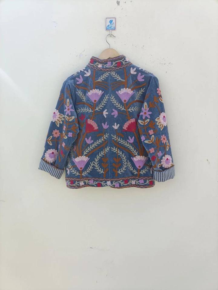 Floral Suzani Embroidery Velvet Jacket Vintage Boho Coat Unisex Winter Jacket Ethnic Chic Outerwear