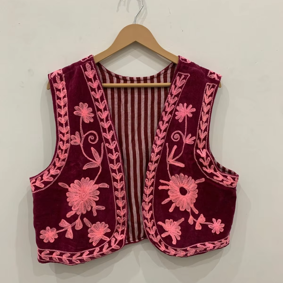 Product name:Floral Suzani Velvet Front Open Sleeveless Waistcoat