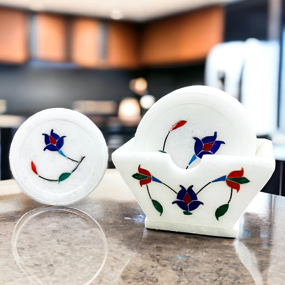 Floral White Inlay Promotional Coaster Set for Events and Marketing