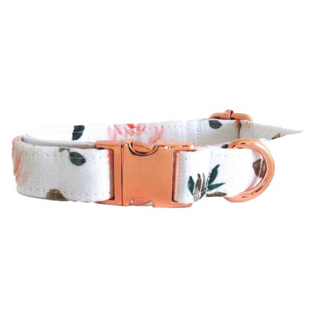 Luxury White Hemp Cotton Dog Collar Solid Floral Pattern Custom Logo Rose Gold Buckle Rivet Decoration Pet Collars Wholesale