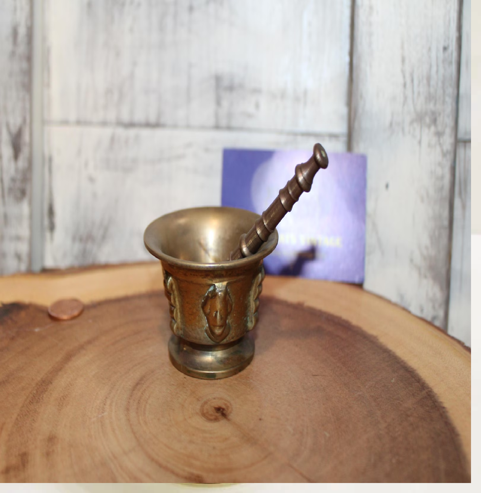 Floral engraved brass mortar pestel set. High shine, available at wholesale prices.