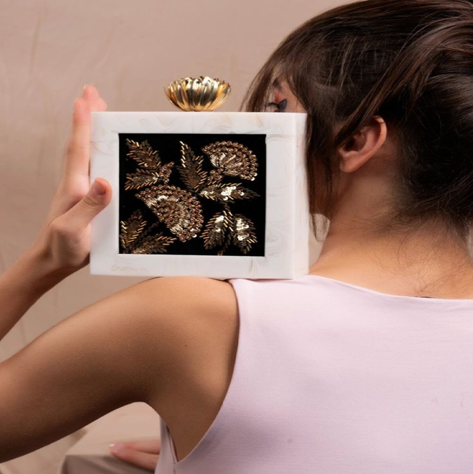 Floral marble clutch wholesale, designer handcrafted stone purses, elegant floral engravings, premium bulk orders available
