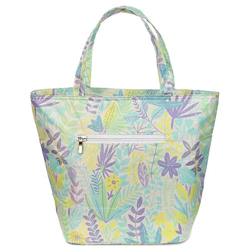 Floral printed polyester tote bag plain handbag manufacturer unique with thermal insulation compartment inside