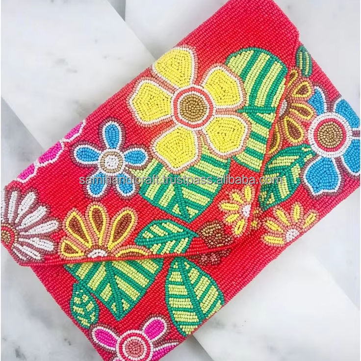Floral Seed Bead Clutch Purses Beadwork Fringe Handbags Ethnic Bead Party Bags Women's Mini Bags