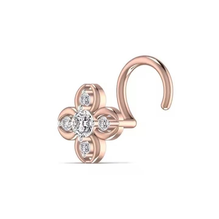 Flourish Design 0.11CT Lab Diamond Nose Ring for Women in 14kt Yellow Rose & White Gold Wedding Fine Jewelry