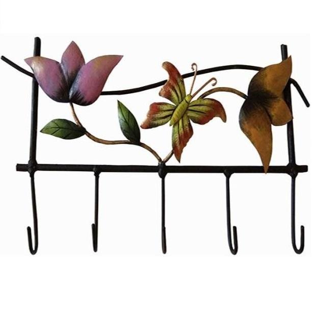 Flower & Butterfly Design Key Holding Vintage Wall Decorative Art Decor Wall Hook for Home Bathroom Kitchenware Use