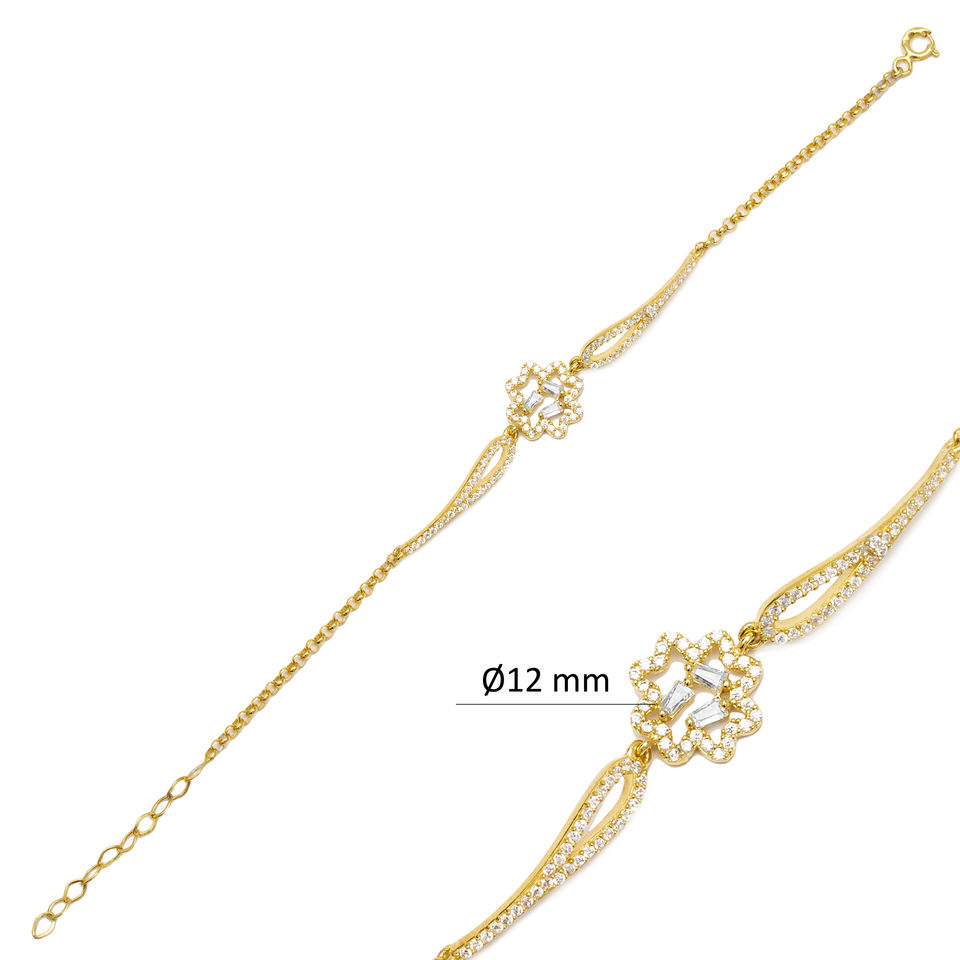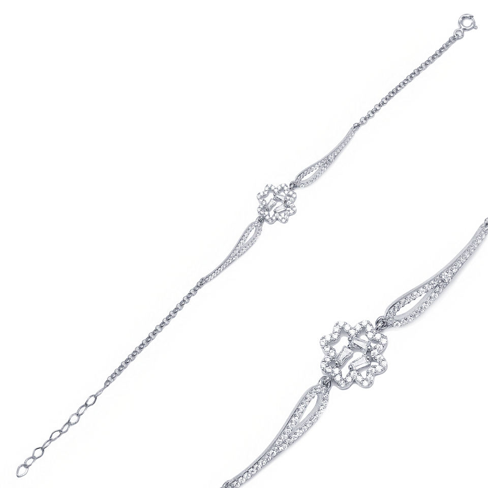 Flower Charm Baguette Bracelet Wholesale Handcrafted 925 Sterling Silver Jewelry New Fashion for Woman
