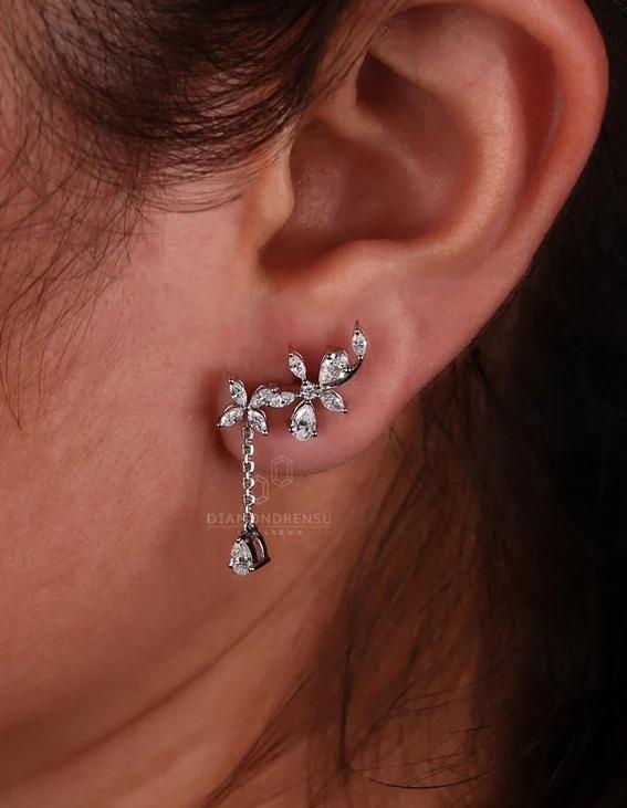 Flower Dainty Threader Tassel Earrings - Marquise & Pear Cut Lab-Grown Diamond Dangle Earrings - Handcrafted Bridal Jewelry