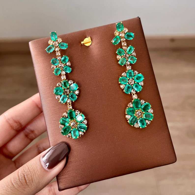 Keyword:Elegant Flower Design 14K Gold Emerald Earring Stylish Jewelry