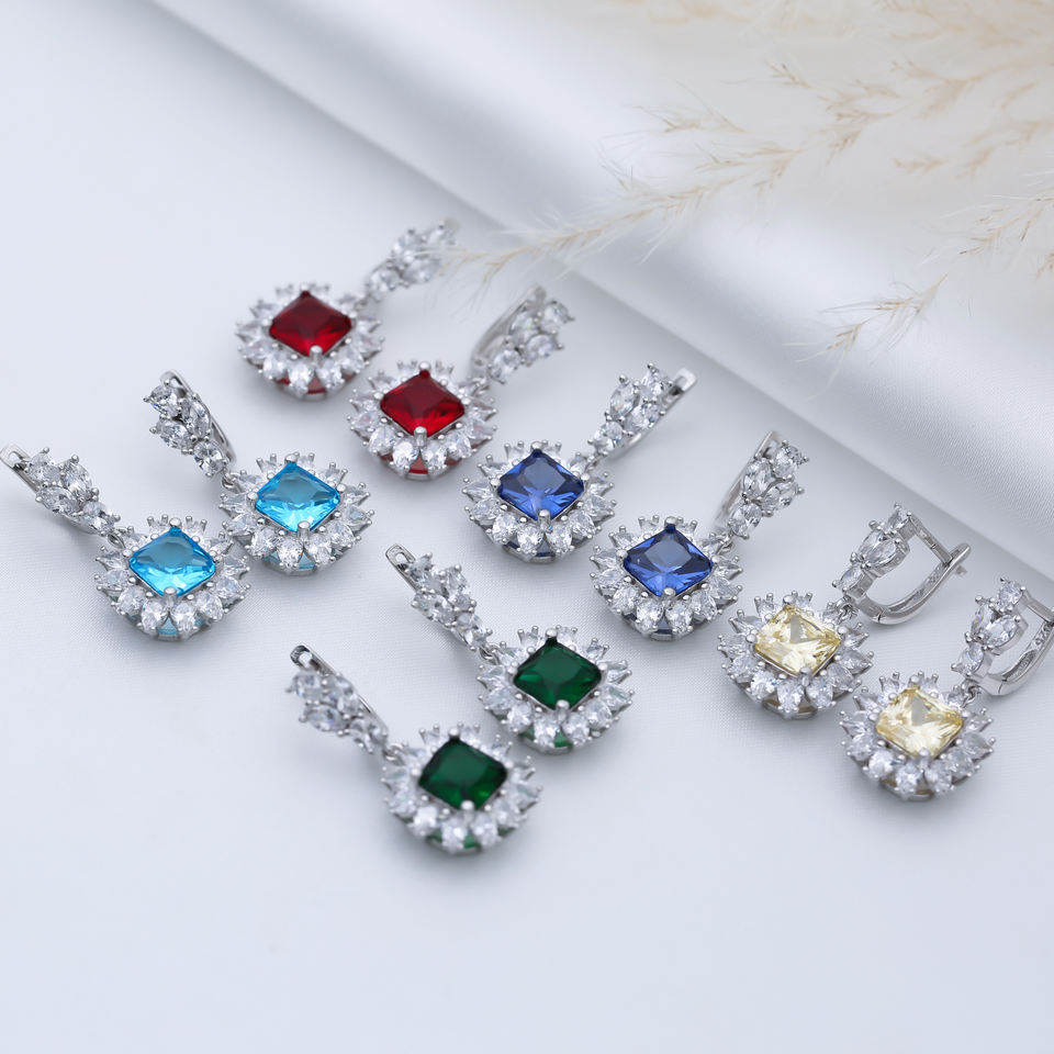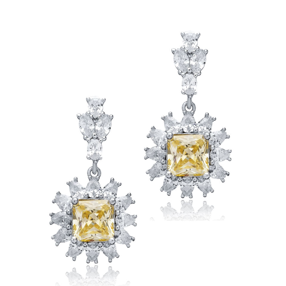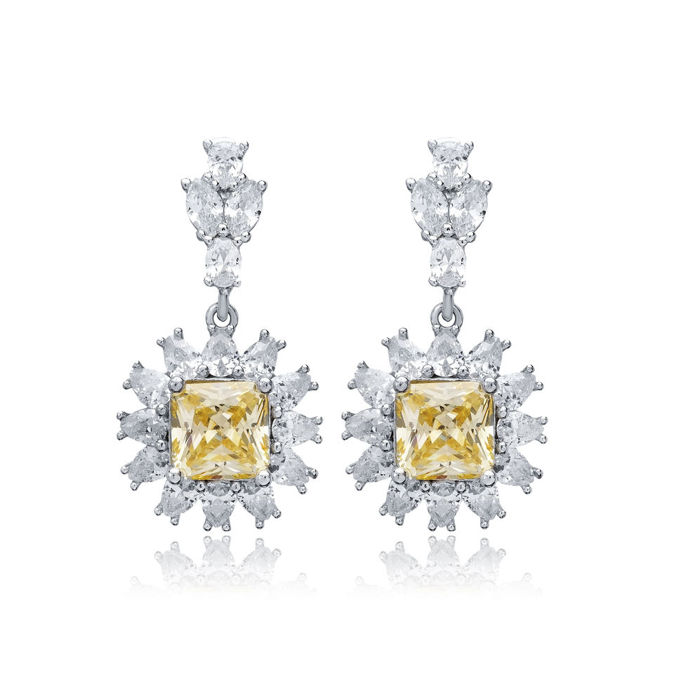 Flower Design Square Citrine CZ Stone Handmade Wholesale 925 Sterling Silver Stud Earrings