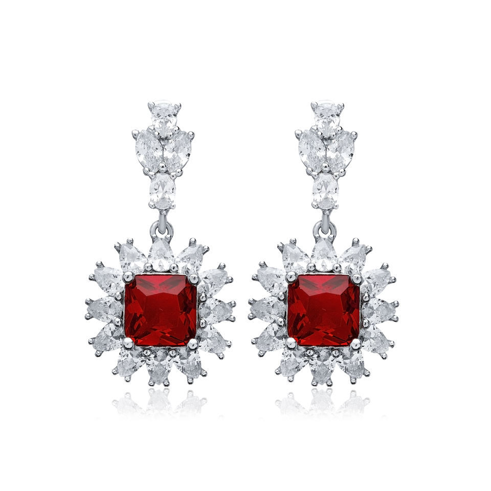 Flower Design Square Garnet CZ Stone Handmade Wholesale 925 Sterling Silver Stud Earrings