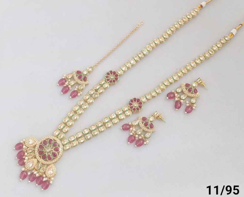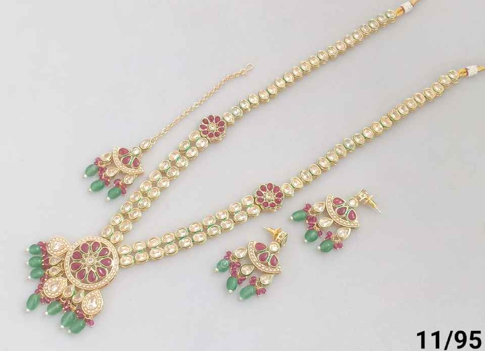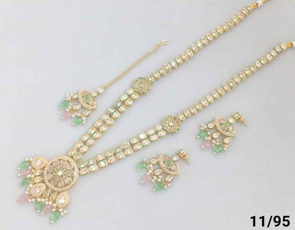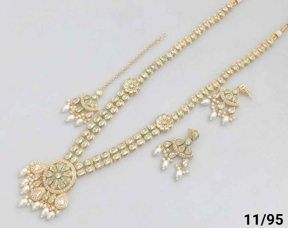 Flower Design Stunning Handcrafted Cubic Zirconia Fashion Indian Long jewellery Necklace With Earring and Mangtika Set For Women