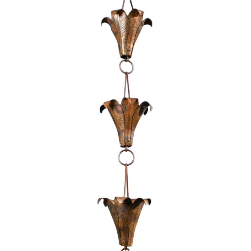 Flower Design Vintage Waterproof Metal Rain Chains for Home & Garden Decoration Copper Color Wall Mount Garden Supplies