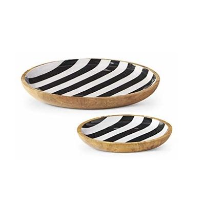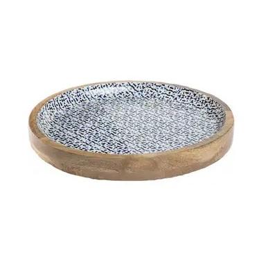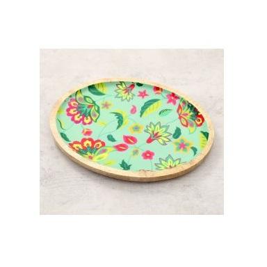 Flower Design Wooden Dish Plate With Enamel Printed for Wedding Round Shape Wooden Food Serving Plate for Daily Uses Home