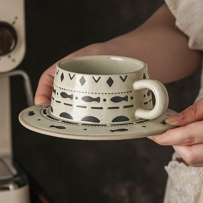 Flower Pattern Ceramic Coffee Cup And Saucer Set 250ml Durable Retro Style For Tea Or Coffee