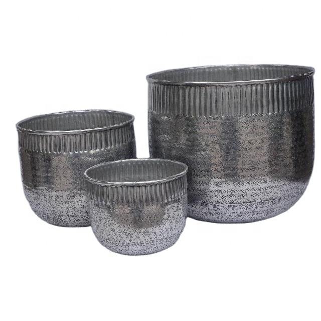 Flower Pot Silver Aluminum Polished Finish Hammered Decorative Planters Set of 4 Pcs India